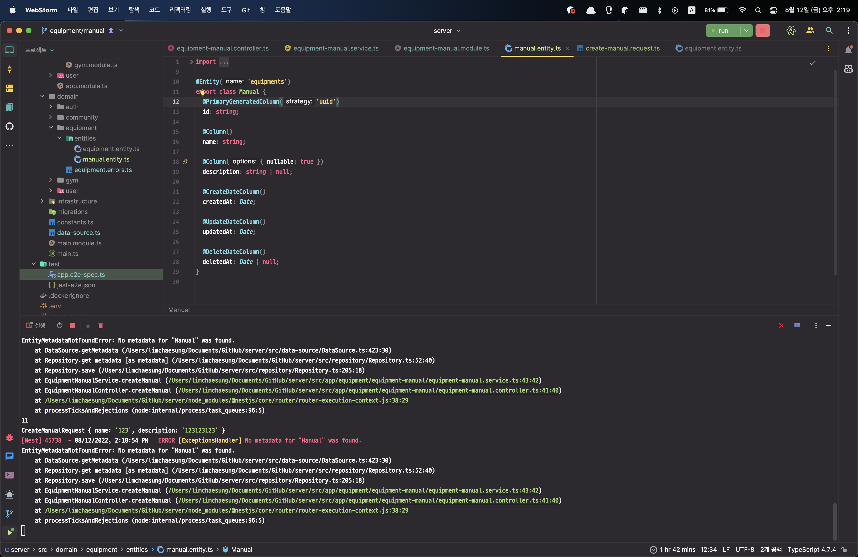 [NestJS] EntityMetadataNotFound Error: No metadata for * was found.Node.js2022. 8. 12. 13:12