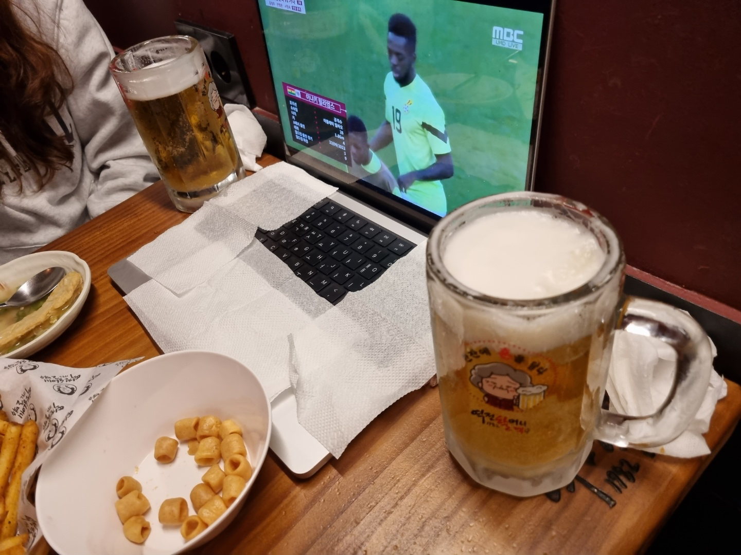 그 후에는 센터 형누나들이랑 월드컵 가나전도 보고