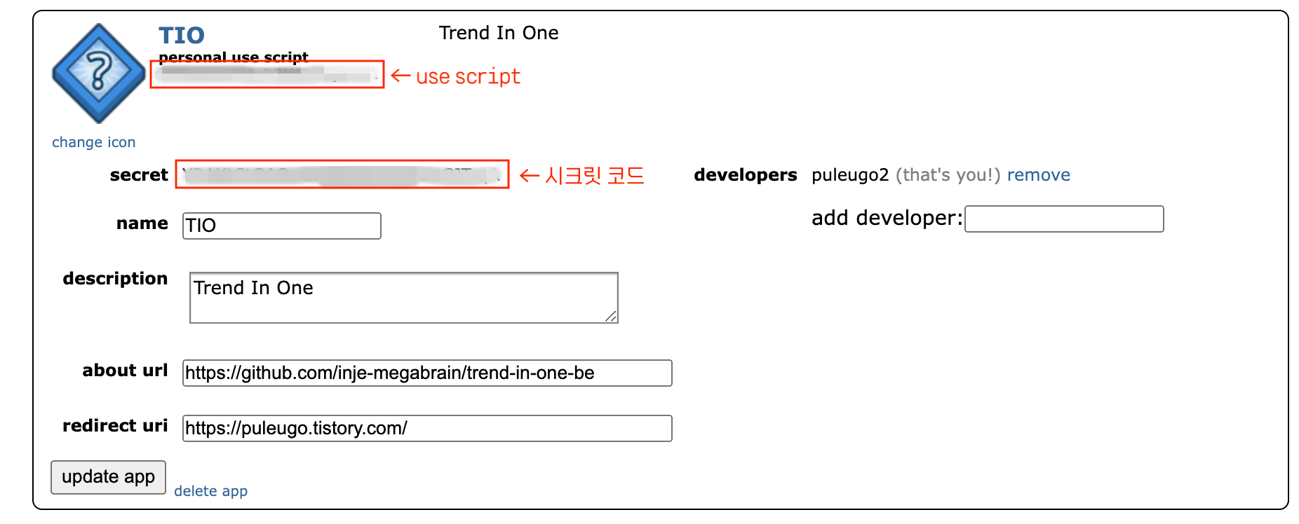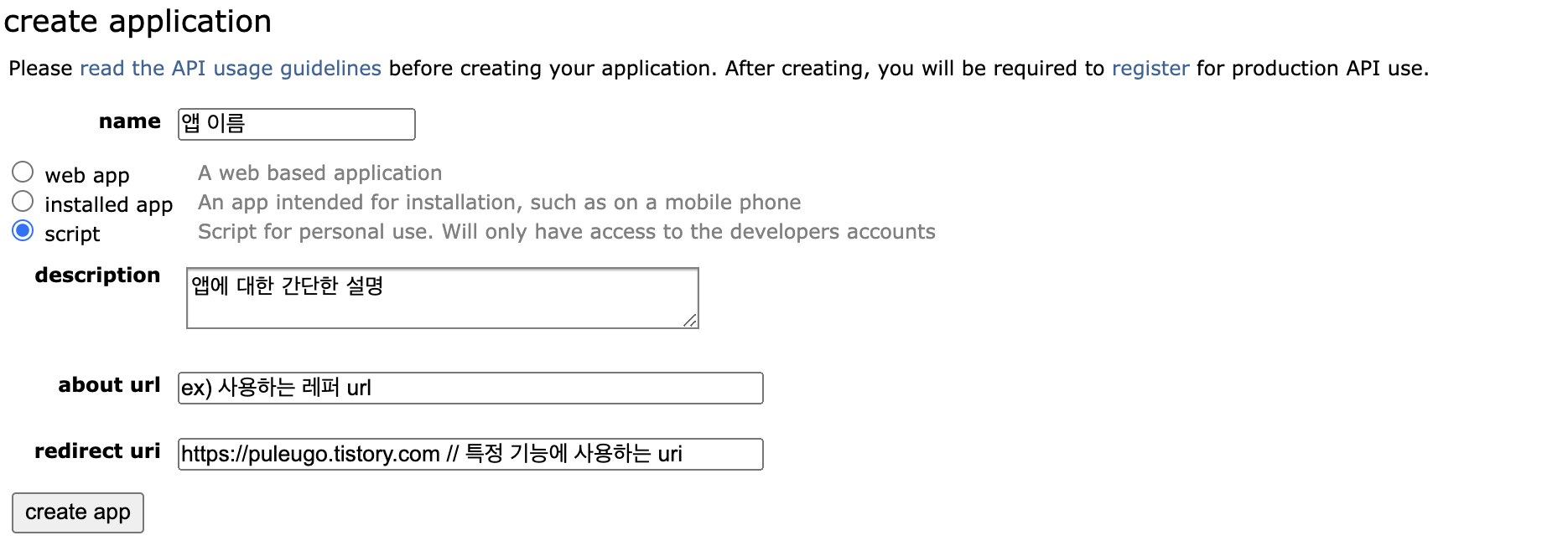 | username | String | <당신의 레딧 앱 아이디> | 내 앱 use script | O |
