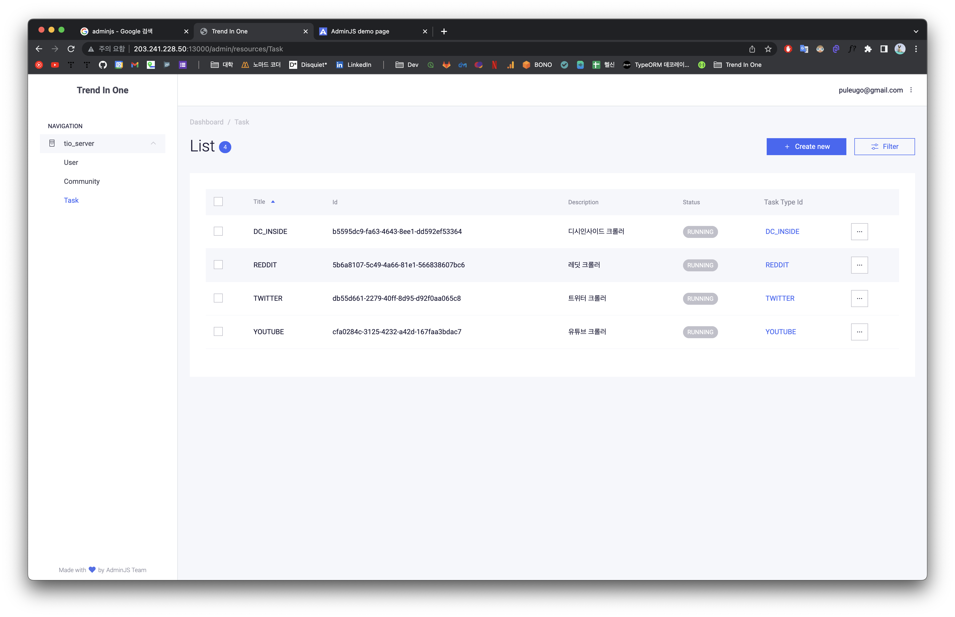 다시 말해서 종합 크롤러 사이트인데, 우리 서비스에서 사용하는 크롤러들을 관리할 수 있는 페이지를 개발하였다.