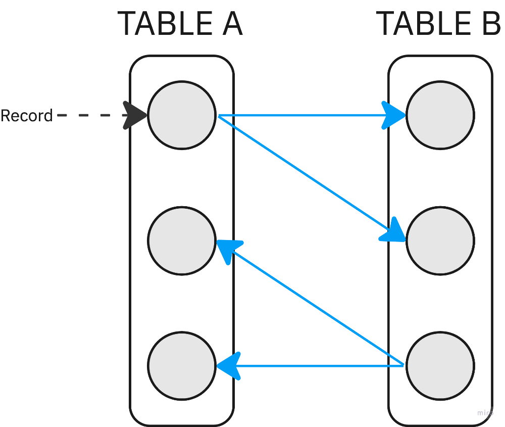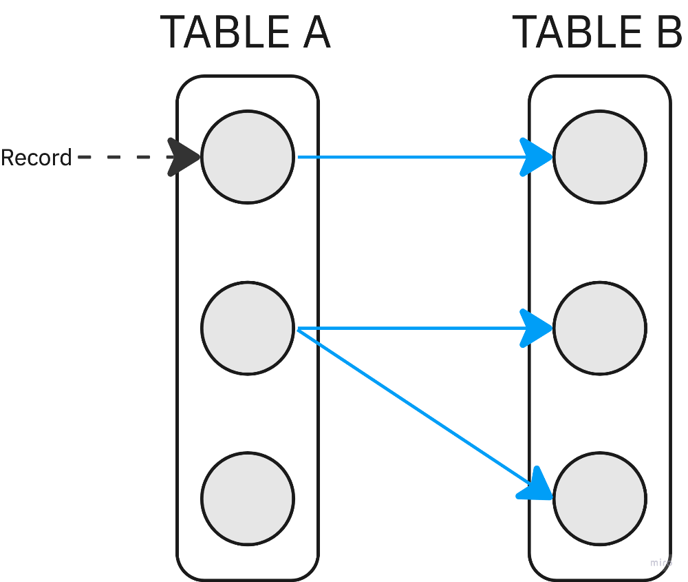각 레코드가 다 대 다로 매핑될 때 사용합니다.