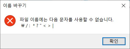 위와 같은 문자는 파일 이름에 사용할 수 없습니다.