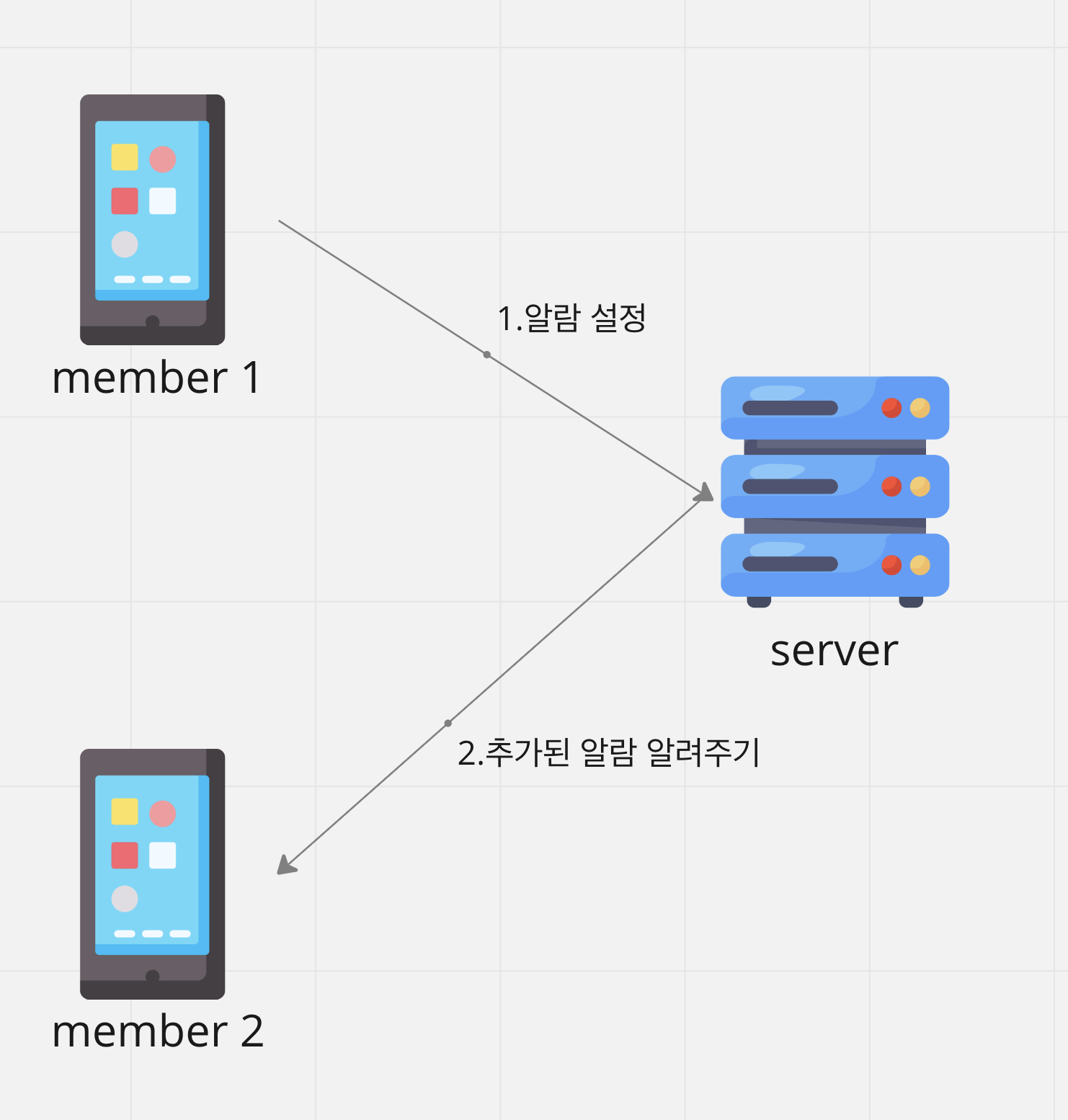 여기서 TODO, 캘린더 기능이 팀 단위로도 설정할 수 있기 때문에 본인이 아닌 다른 팀원이 추가, 수정한 알람이 내 폰에서 울려야한다.