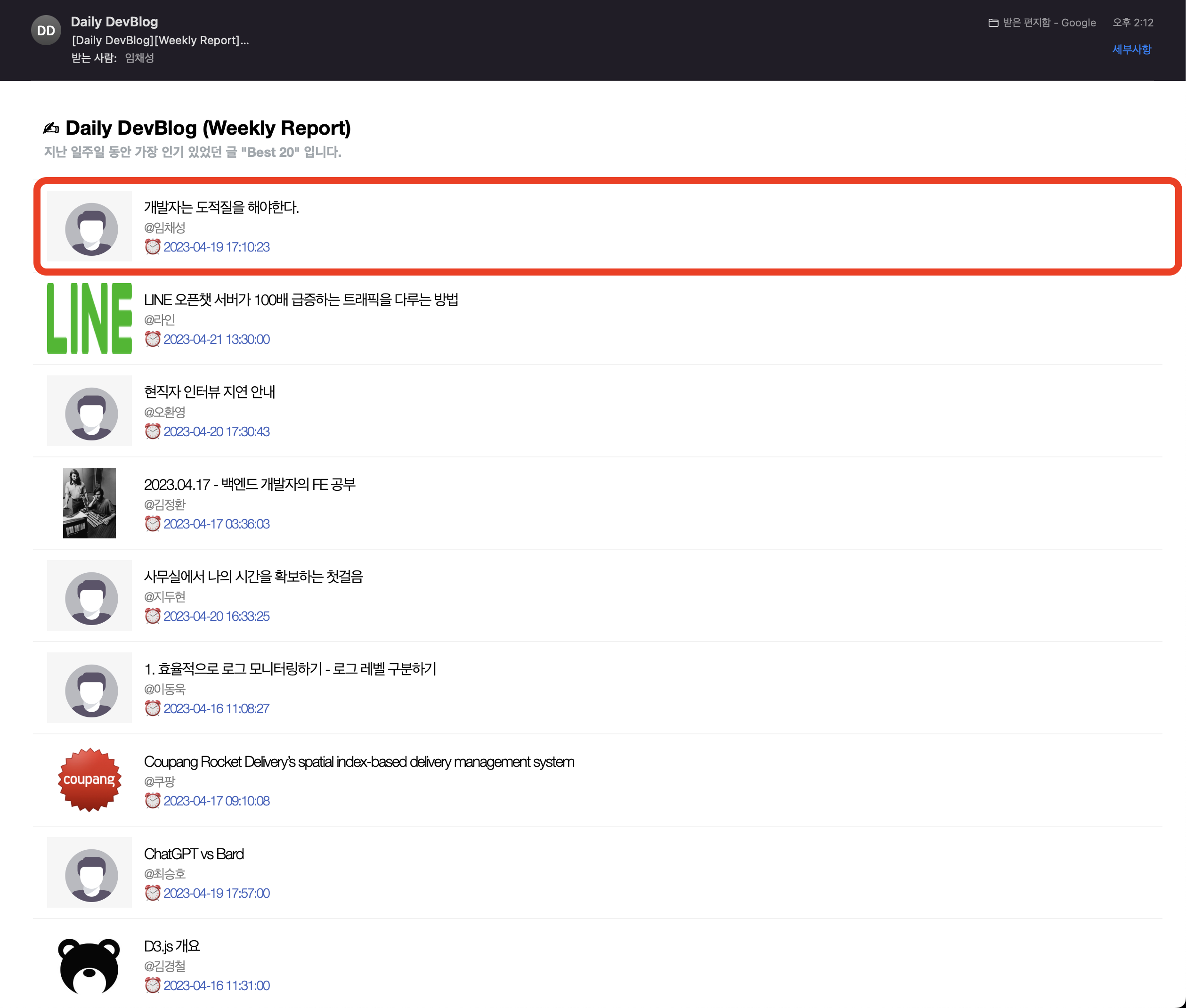 DevBlog Weekly 1위 감사합니다!