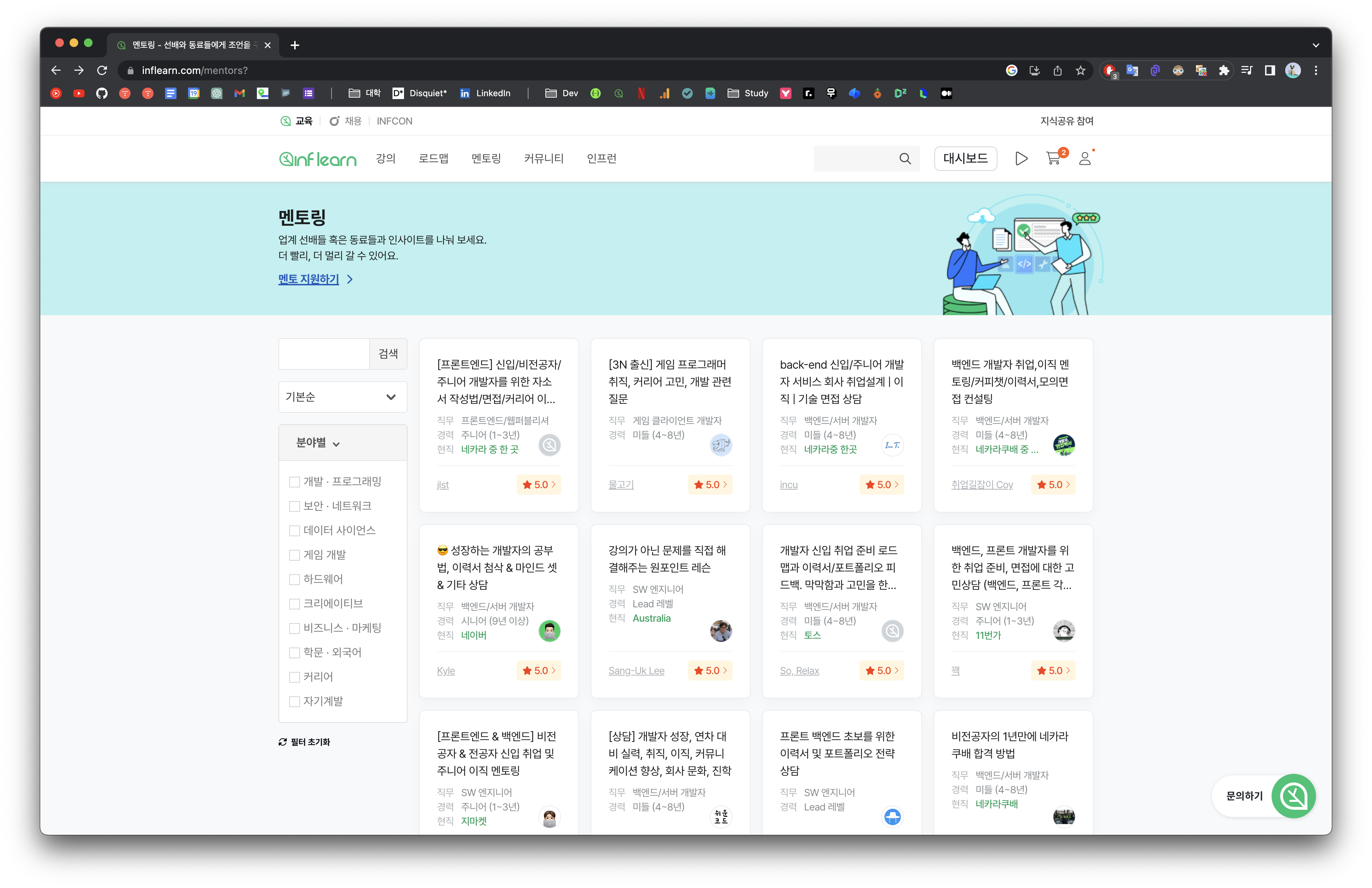 현질도 가끔 필요할 수 있다. 인프런에서는 이런 멘토링 교육 서비스를 지원하고 있다.