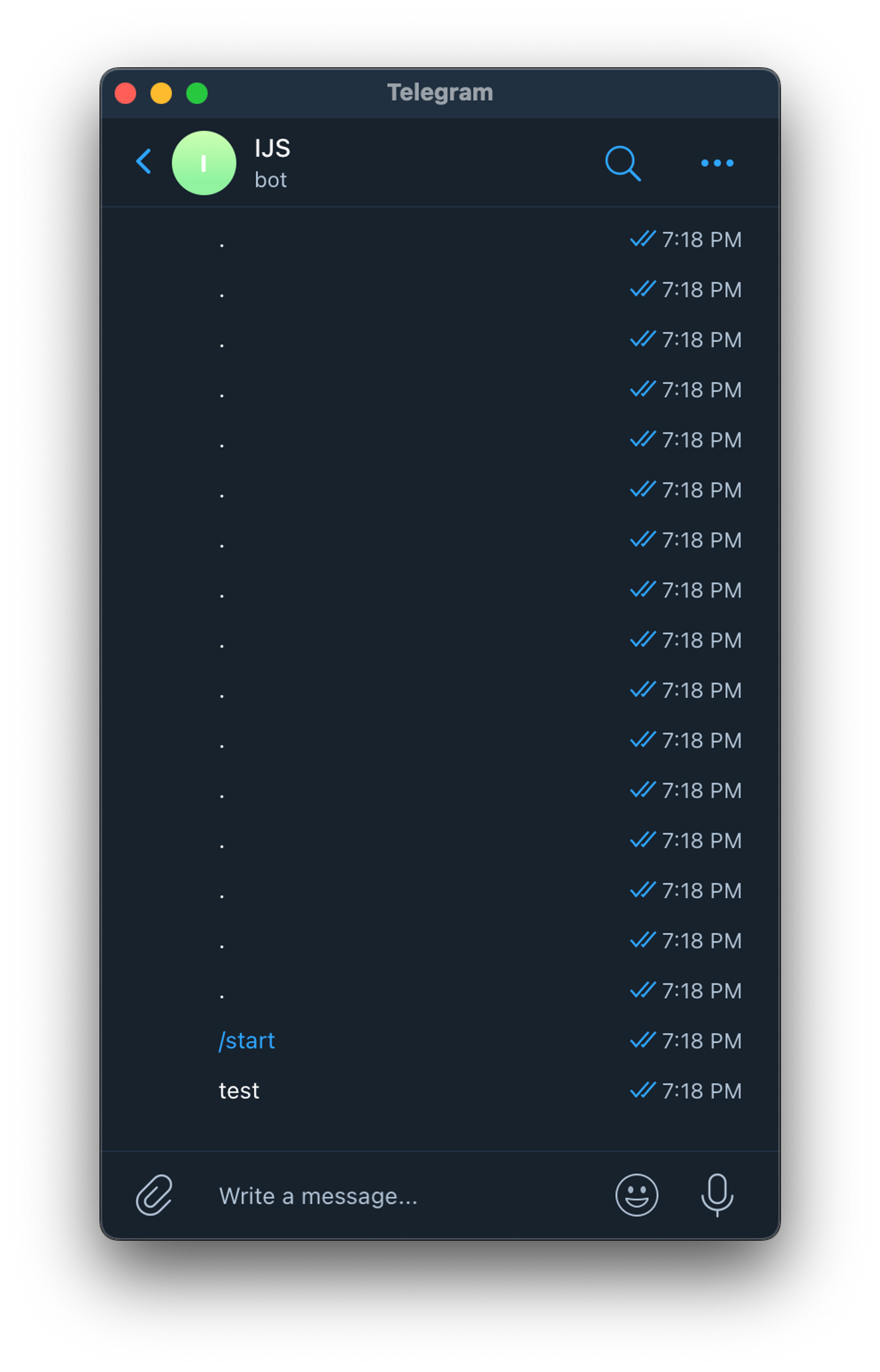 /start 명령어를 보낸 후 채팅을 걸어주세요.