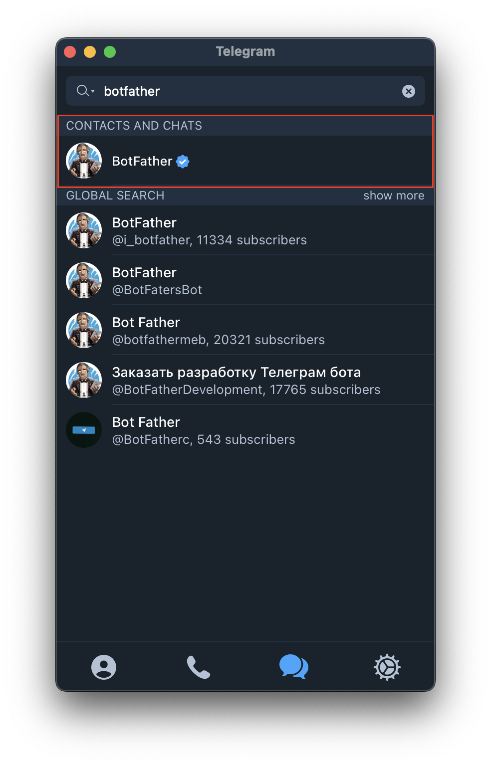1. BotFather 검색 후 추가