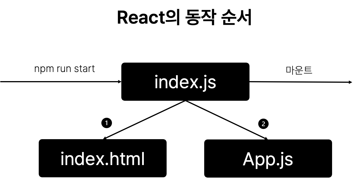React는 index.html을 모두 읽어들인 후 index.html을 실행합니다. index.html에 App.js의 컴포넌트의 render 함수를 호출하여 return하는 데이터를 html으로 파싱해서 index.html의 body 태그에 추가합니다. 이전에는 index.html(header) -> index.html (body의 id "root"를 가진 div) -> React에서 호출한 모든 컴포넌트를 div에 추가 -> index.html의 남은 body 불러오는 순서라고 생각했습니다. 이는 틀렸습니다.