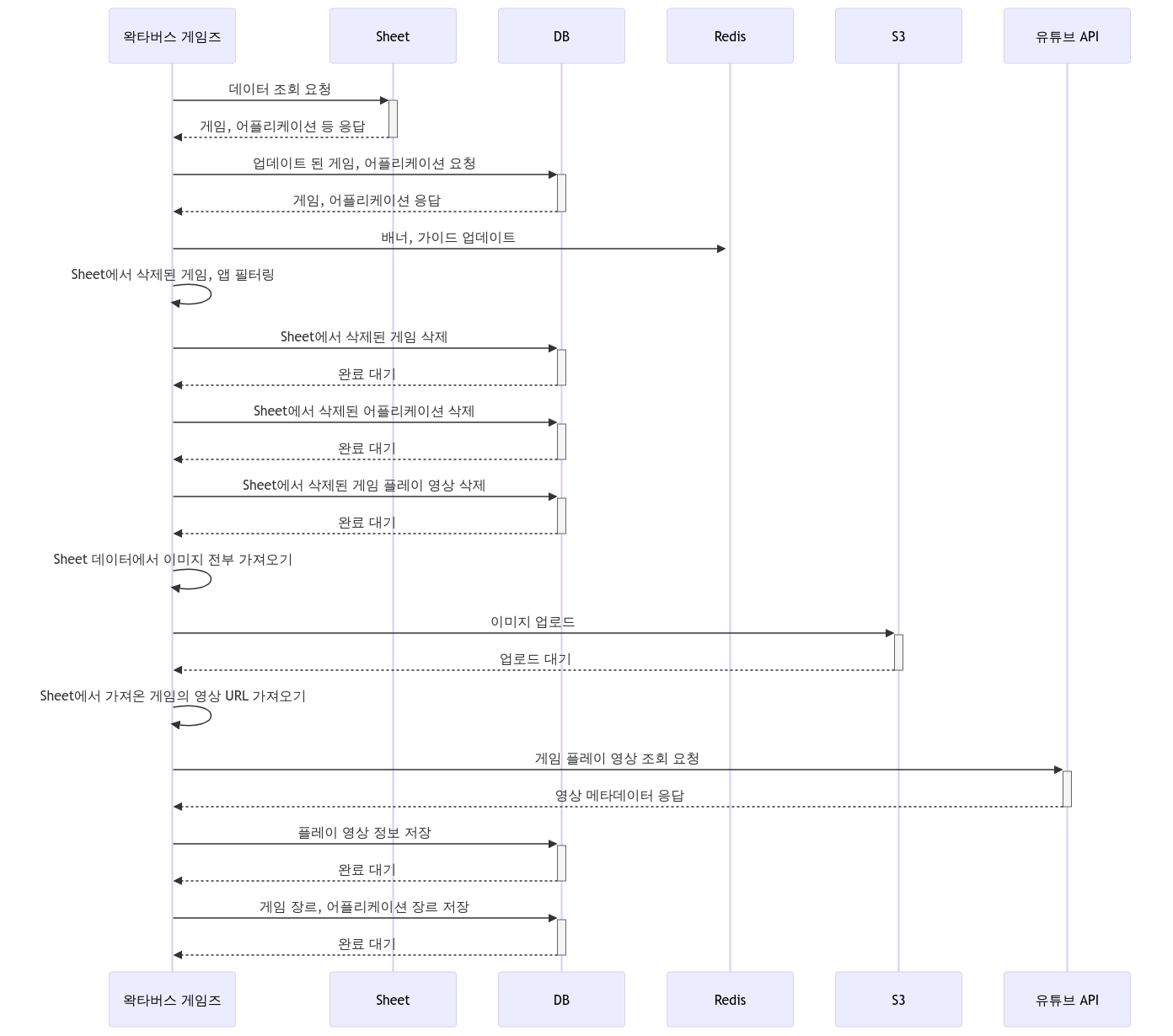플랫폼 비즈니스에서 가장 중요한 건 콘텐츠입니다. 개발 초기부터 스프레드 시트를 사용하여 팀 간의 의존없이 콘텐츠 수집과 서비스 개발이 이루어지며 왁타버스 게임즈 서비스가 빠르게 성장할 수 있었습니다. 따라서 왁타버스 게임즈의 기반이 되는 기능이라고 볼 수 있습니다.