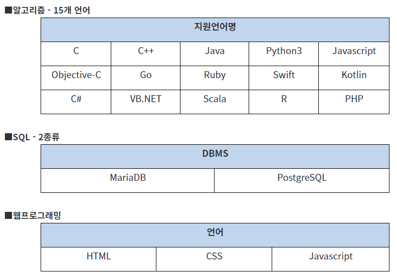 - 외부 ide 사용 불가, 제공하는 웹 사이트내에서만 사용