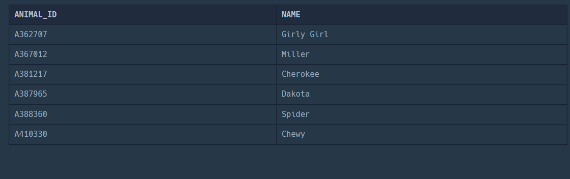 SELECT ANIMAL_ID, NAME # 가져올 열