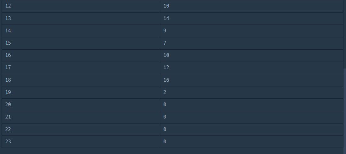입양시각이 0 ~ 23인 시간대의 수를 전부 가져옵니다.