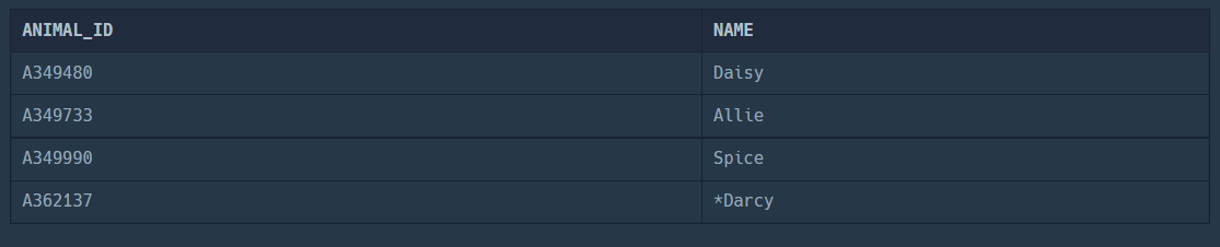 SELECT OUTS.ANIMAL_ID, OUTS.NAME