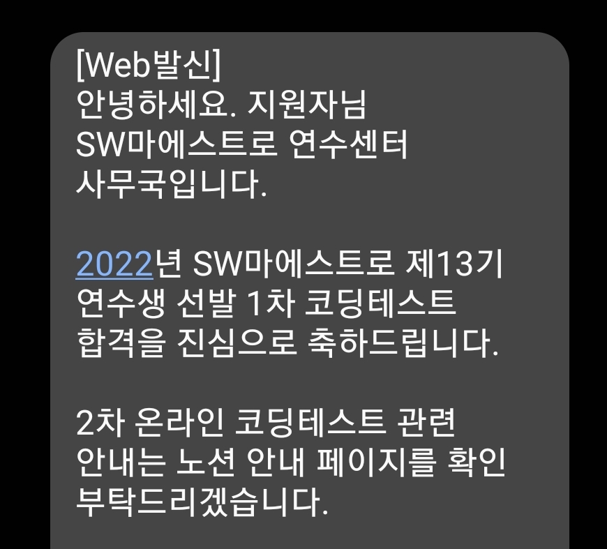 | [SW 마에스트로] 13기 서류 합격 후기 + 작성법 공유 (6) | 2022.02.13 |