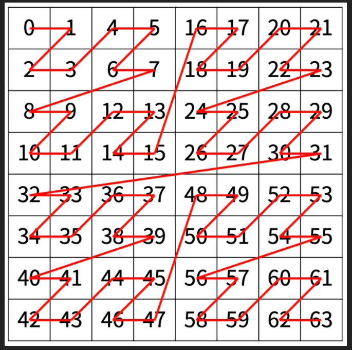 각 인덱스는 Z모양으로 수가 주어집니다.